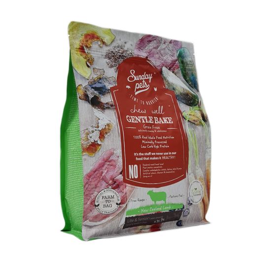 Sunday Pets Gentle Bake Lamb (Lamm) Senior Dog 1,3kg- Lammfleisch von Neuseelands Farmen direkt in die Tüte. Dieses Trockenfutter für Hunde enthält 64% Zutaten vom Lamm und 34,9% Obst & Gemüse!
